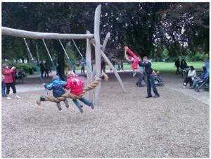 Der Spielplatz macht einen herausragenden Eindruck, hat einen ruhigen Lautstärkepegel.